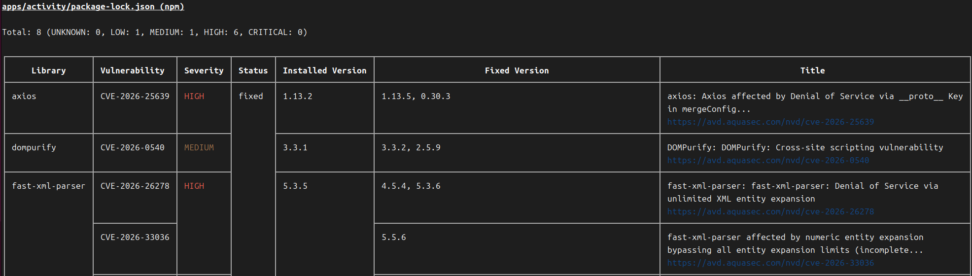 Trivyの「Status: fixed」の意味